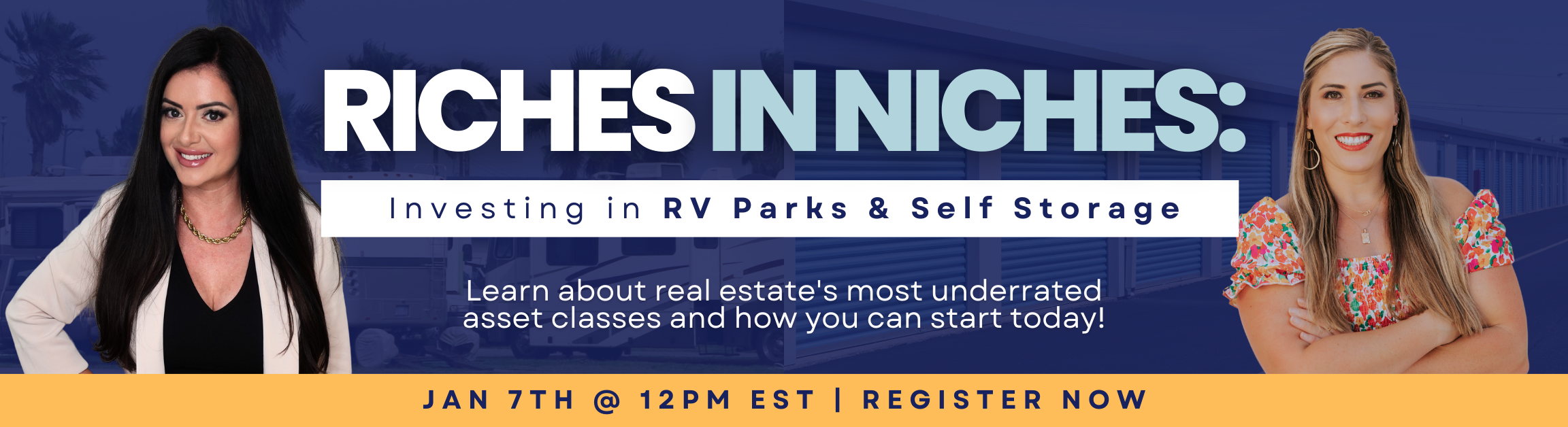 In this free training session, Heather Blankenship and Bree Hartman will reveal the reasons why RV Parks & Self Storage are the most underrated assets in all of real estate investing.